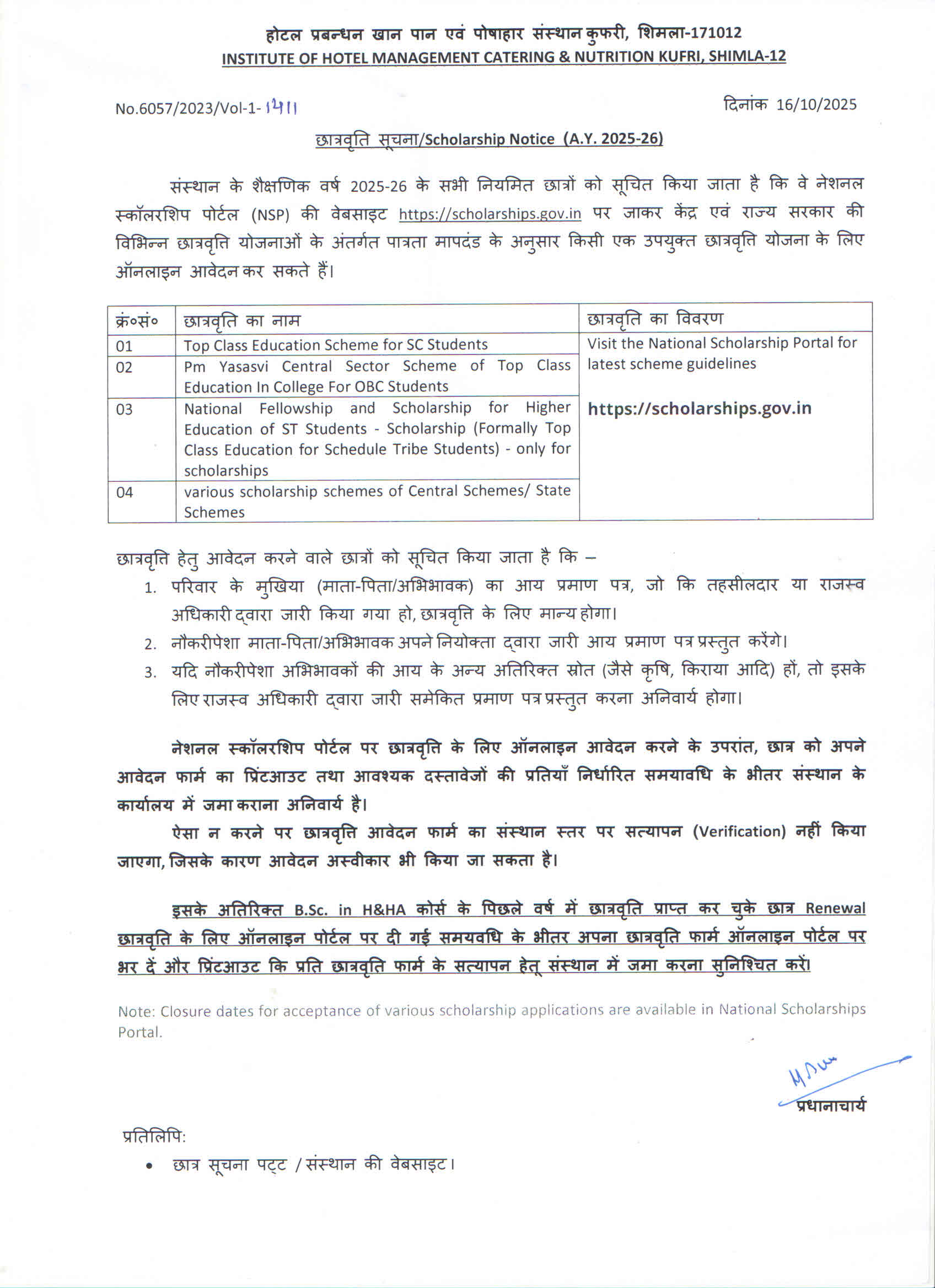 Scholarship Notice (A.Y 2025-26)